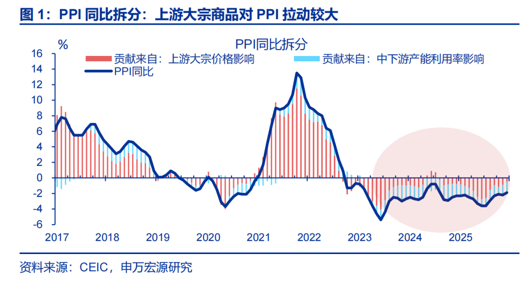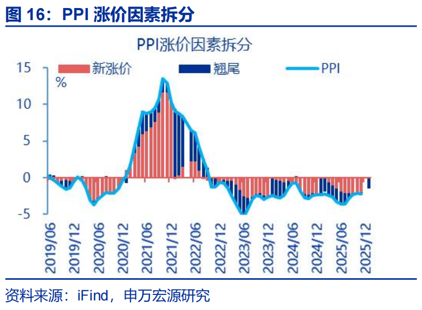 展望后续:相比于上游涨价的影响,反内卷能否持续拉动中下游价格更加关键,我们持续跟踪后续政策效果。过去三年,大宗商品价格仅能解释30%PPI波动,PPI价格更多受到中下游内卷导致价格“超跌”的影响;由于中下游民企占比较高,反内卷政策能否有效传导有待持续跟踪,我们维持PPI弱修复的判断;CPI方面,金价高位,服务消费改善,叠加中下游PPI弱修复,或支撑核心CPI上行;但春节错位下基数走高或约束1月CPI上行幅度。